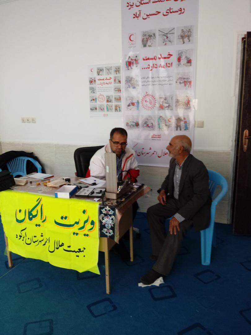 رئیس جمعیت هلال احمر شهرستان ابرکوه بیان داشت: کاروان سلامت هلال احمر ابرکوه در پایان فعالیت خود در مجموع بیش از 132نفر از مردم روستا (78 نفر پزشک عمومی ، 54 نفر پزشک متخصص) را به صورت رایگان ویزیت کردند .