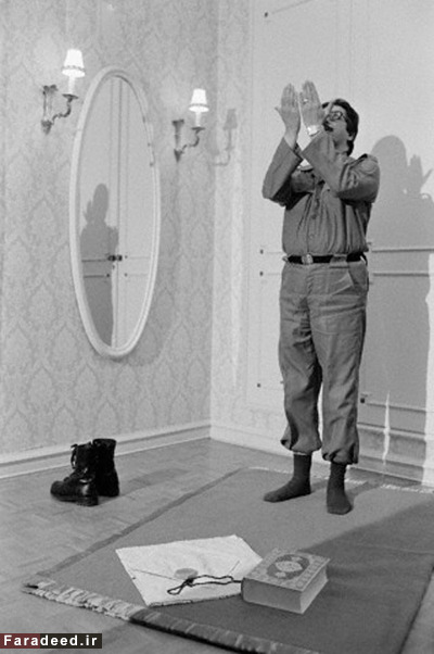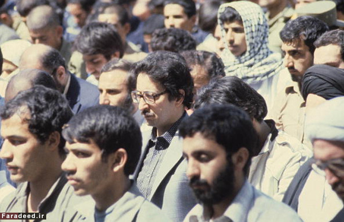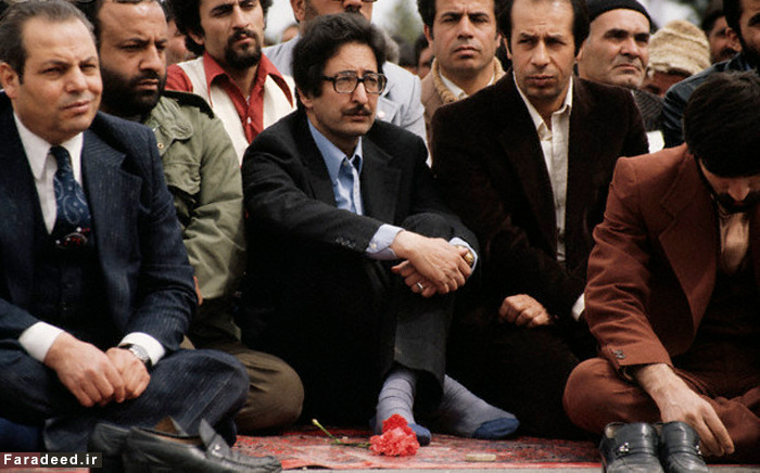 بنی صدر با لباس نظامی در حال اقامه نماز