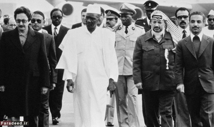 بنی صدر و رجایی در استقبال از یاسر عرفات در نشست جنگ ایران و عراق در تهران