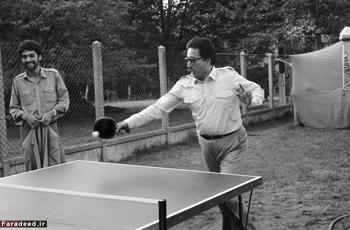 بنی صدر در حال بازی پینگ پنگ در اقامتگاهش در "ایل دوفرانس"