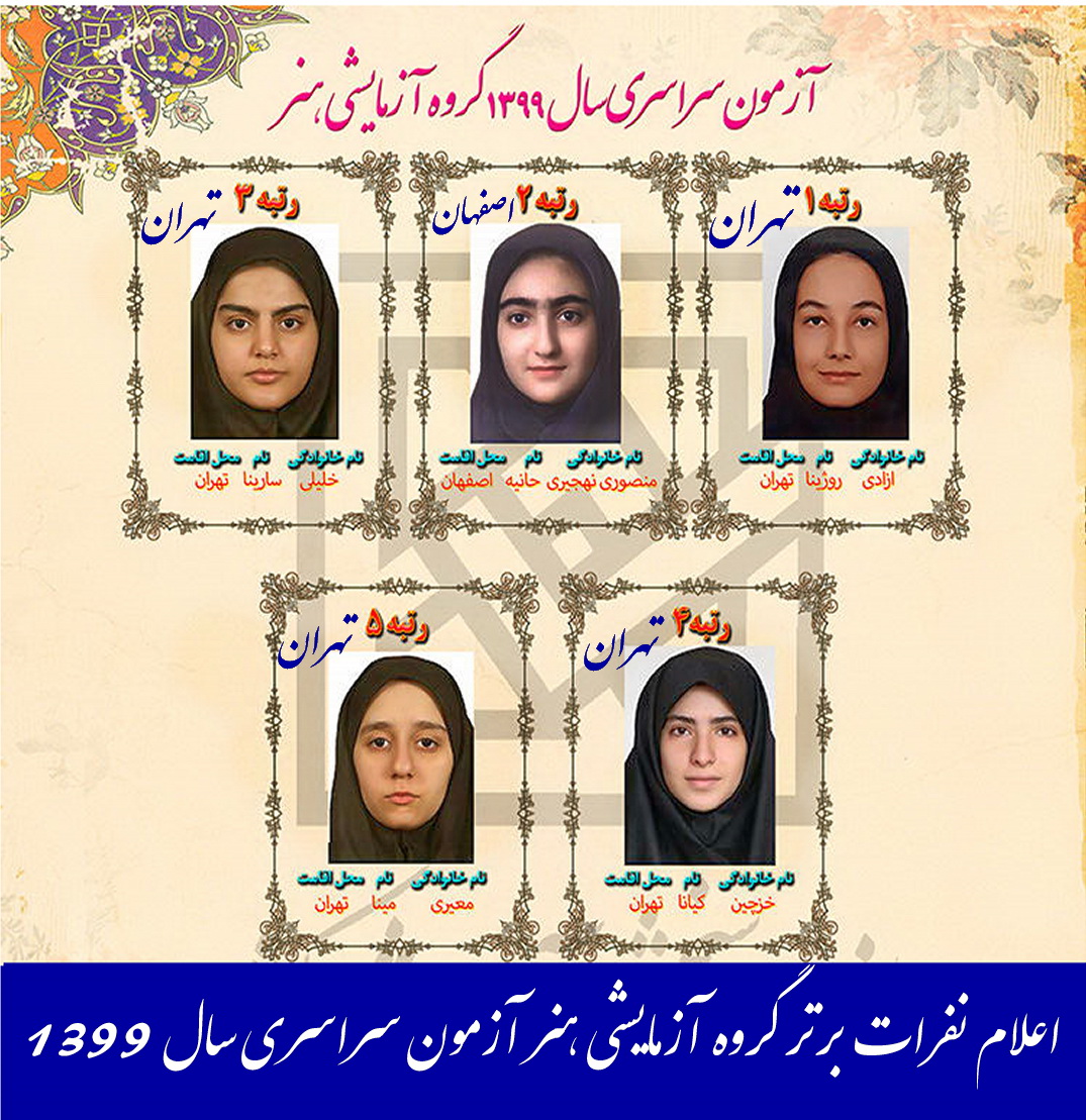 اعلام نفرات برتر گروه آزمايشي هنر آزمون سراسری سال 1399