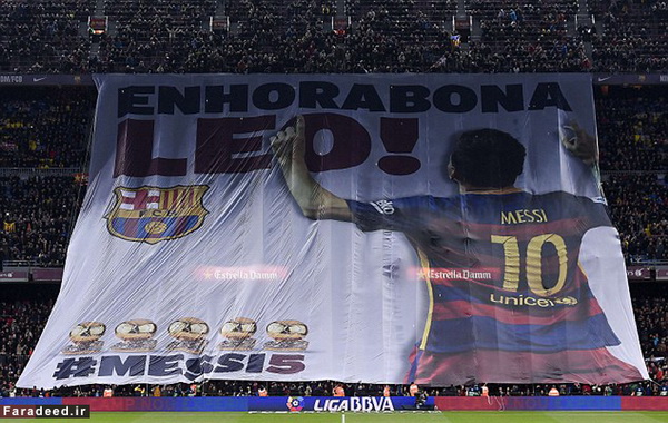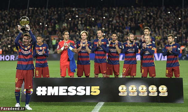 یزدفردا"لیونل مسی که هفته گذشته موفق شد پنجمین توپ طلای خود را به دست آورد در بازی شب گذشته بارسلونا مقابل اتلتیک بیلبائو آن را به ورزشگاه نیوکمپ آورد.