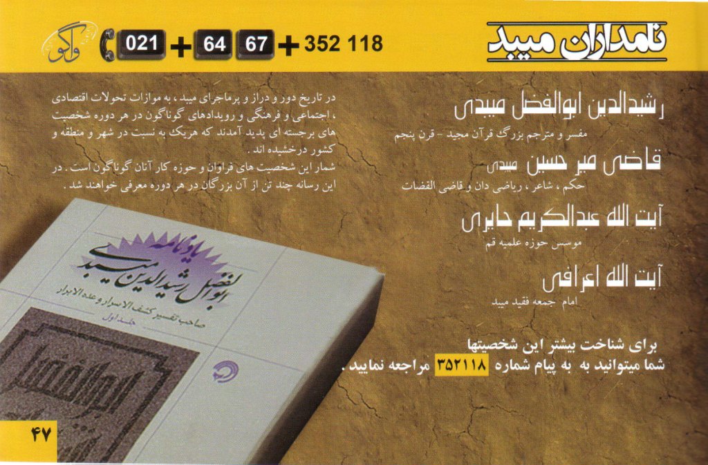شبکه واگو ديدني هاي ميبد را معرفي مي کند/ راهنماي شنيداري ديدني هاي ميبد از طريق شبکه واگو/با گرفتن شماره 6467-021 شنونده تاریخ و تمدن کهن میبد باشید