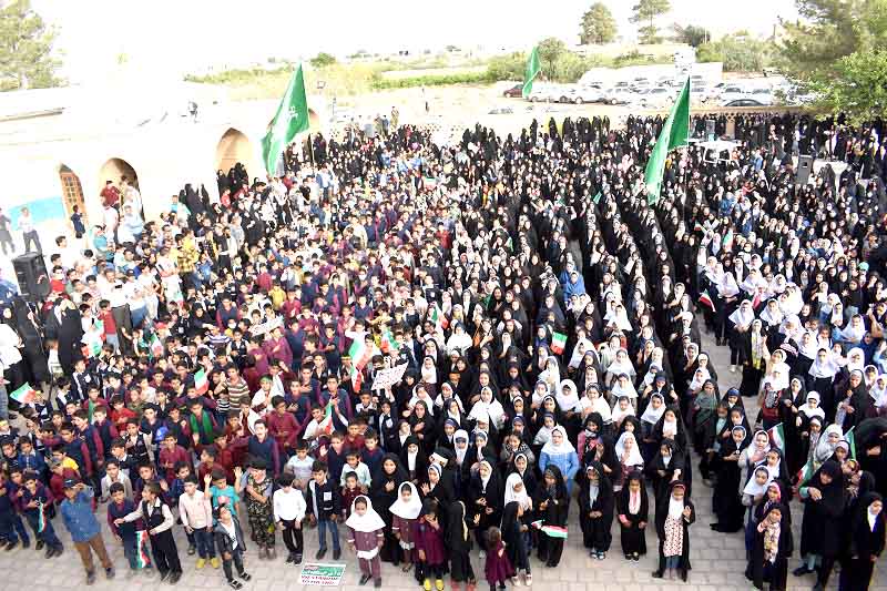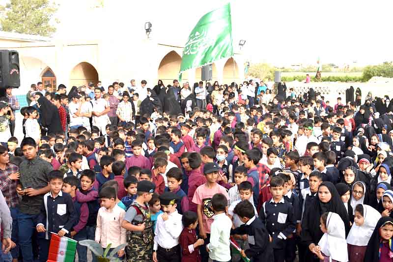 اجرای این سرود همگانی با همکاری اداره آموزش وپرورش و ناحیه مقاومت بسیج وبا حضور پرشور دانش آموزان بهابادی در مقبره آخوند ملا عبدالله بهابادی بهاباد برگزارشد.