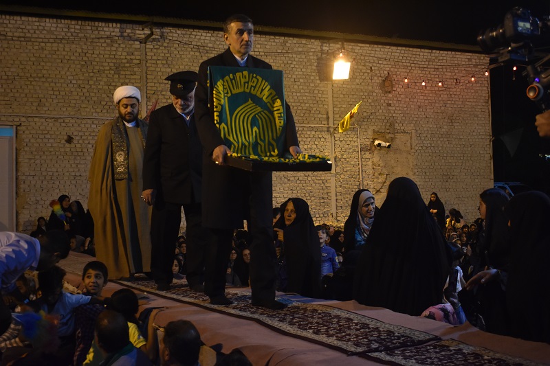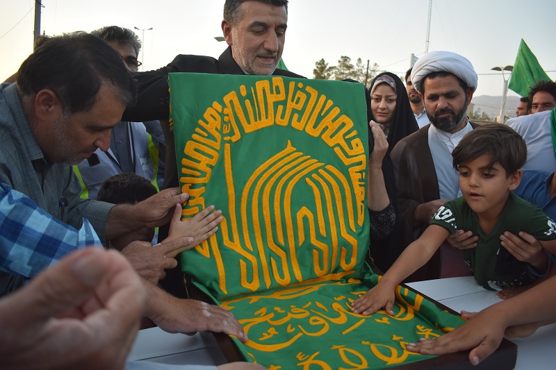 حضور خادمان امام رضا (ع) که حامل پرچم متبرک حرم رضوی بودند حال و هوای معنوی به مراسم داد و مداحان اهل بیت با قرائت اشعار زیبا در صف ضامن آهو مردم را به فیض رساندند.