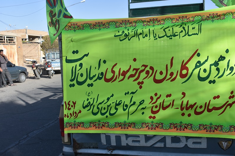 کاروان دوچرخه سواری فدائیان ولایت شهرستان بهاباد پس از ادای احترام به ساحت مقدس شهدای گمنام  وشهدای شهرستان بهاباد حرکت خود را از شهرستان بهاباد به طرف بارگاه ملکوتی و منور هشتمین کوکب آسمان ولایت و امامت حضرت ثامن الحجج علی ابن موسی الرضا(ع) آغاز کردند.