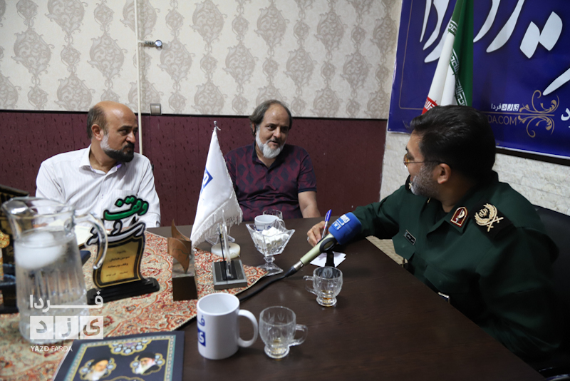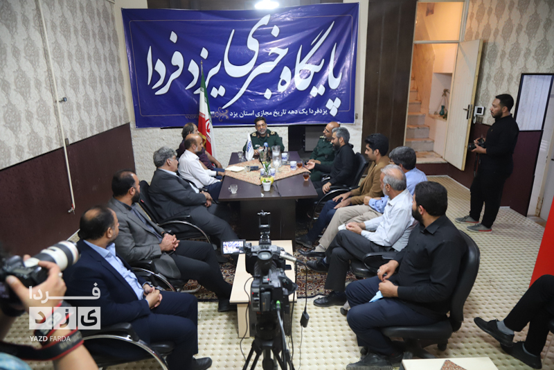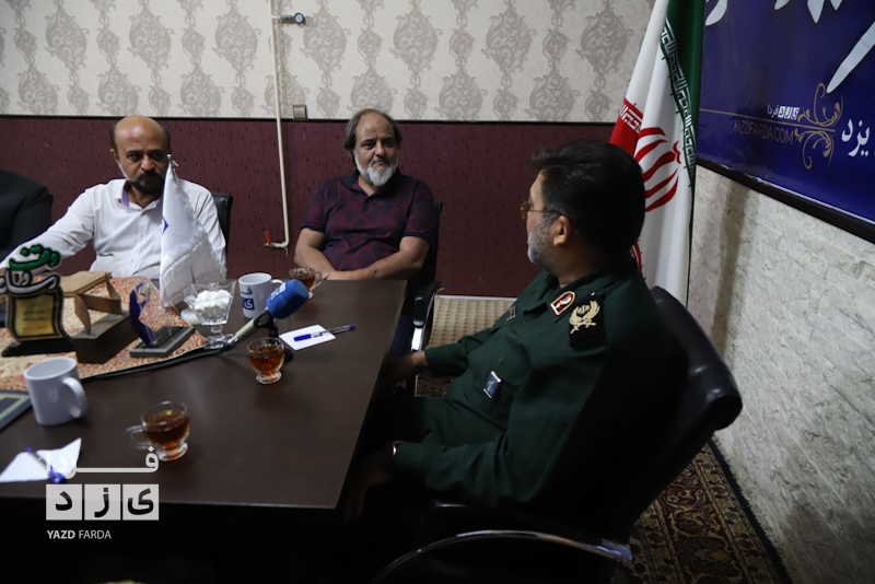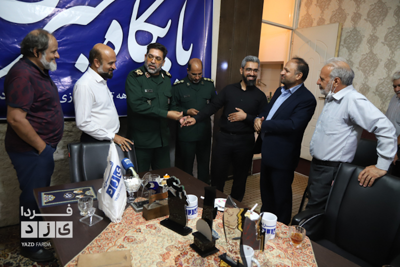 عصر روز سهشنبه ٢۵ مرداد ماه "سردار زارع کمالی" فرماندهی سپاه الغدیر استان یزد به همراه مسئول بسیج رسانه و روابط عمومی سپاه الغدیر از پایگاه خبری و اطلاع رسانی یزدفردا بازدید و با مدیران و خبرنگاران این پایگاه بحث و گفتگو کردند.