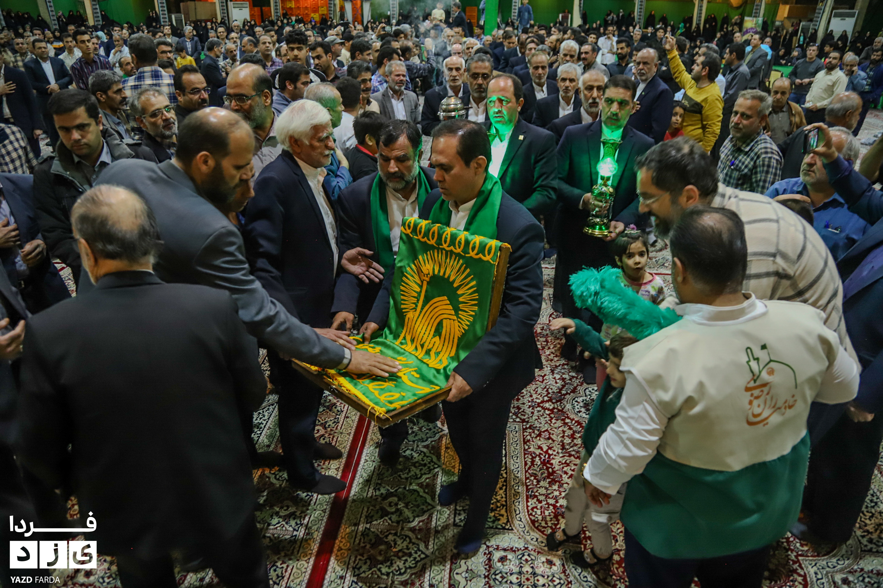 مراسم معنوی خادم‌یاران رضوی شهرستان یزد، با حضور آیت‌الله سیدمحمدکاظم مدرسی و نوای دلنشین مداح برجسته کشوری حاج مهدی منصوری، و همراه با پرچم متبرک حرم مطهر امام رضا (ع)، برگزار شد.
