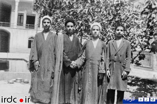 حسن روحانی در سنین نوجوانی در كنار سه تن از طلاب