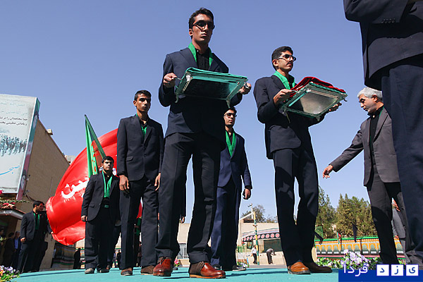 گزارش تصویری/ برافراشتن پرچم متبرک حضرت اباعبدالله الحسین(ع) در دبیرستان پسرانه شاهد شهید رمضان زاده