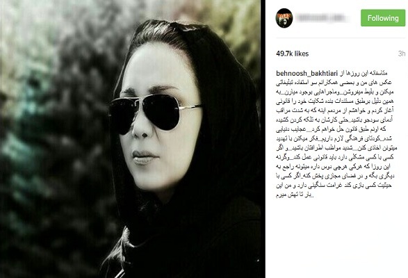 بهنوش بختیاری ، بازیگر کشورمان در صفحه شخصی اینستاگرام خود، گلایه هایی کرد از کسانی که از عکس های وی و همکارانش سوء استفاده می کنند و نوشت :