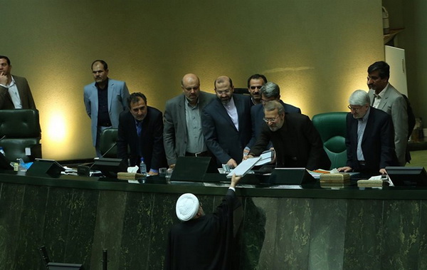 به گزارش تسنیم، حجتالاسلام حسن روحانی رئیسجمهور که ساعاتی پیش برای تقدیم لایحه بودجه سال 95 و لایحه برنامه ششم به صحن علنی مجلس آمده بود، این دو لایحه را تقدیم علی لاریجانی رئیس مجلس کرد.