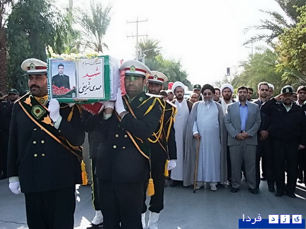 طبس- سیدابوالفضل حقانی: پیکر شهید "ستوانسوم مهدی شریفی" که در مصاف با اشرار مسلح به درجه رفیع شهادت نائل آمد، امروز بر دستان مردم شهیدپرور شهرستان طبس تشییع و در زادگاهش روستای فهالنج طبس به خاک سپرده شد.