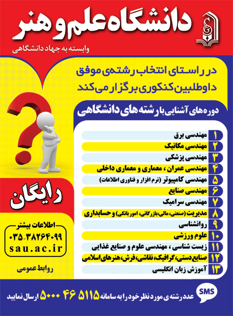 دوره هاي آشنايي با رشته هاي دانشگاهي و انتخاب رشتهي رايگان ويژه داوطلبان كنكوري در راستاي انتخاب رشته ي موفق داوطلبين در دانشگاه علم وهنر برگزار ميگردد.