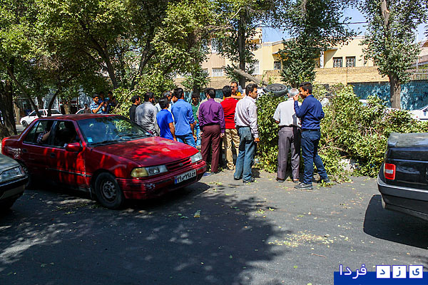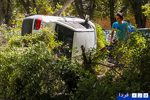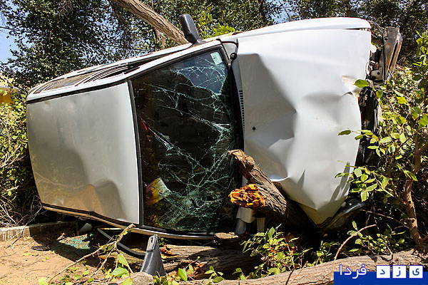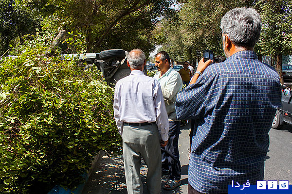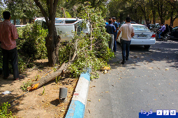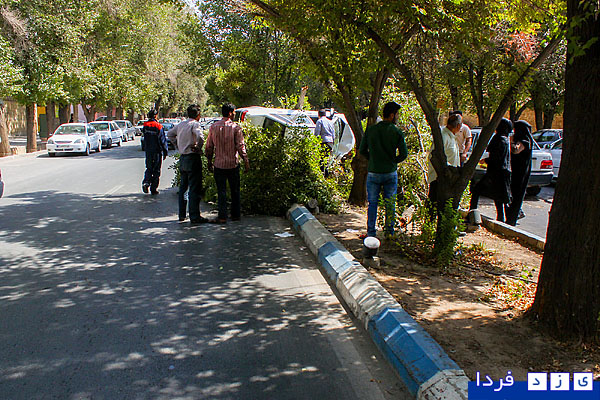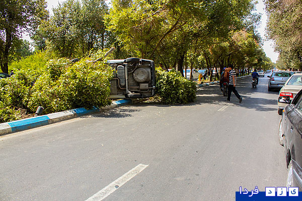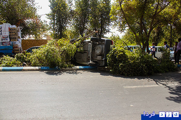 گزارش تصویری/ واژگونی پراید در بلوار شهید پاکنژاد و قطع دو درخت