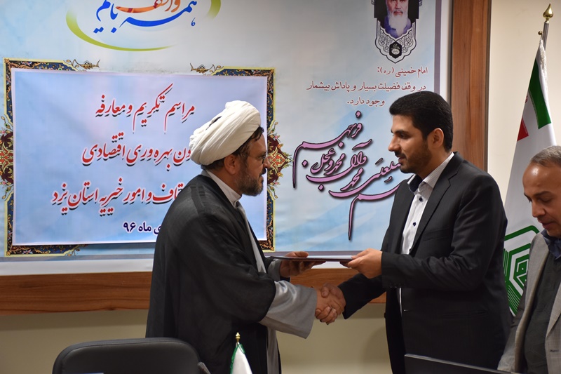 در پایان این مراسم از زحمات و تلاش های مهندس حمید رضا تربتی تجلیل و مهندس محمد جواد ابوالحسینی به عنوان معاون جدید بهره وری اقتصادی اداره کل اوقاف و امور خیریه استان یزد معرفی شد.