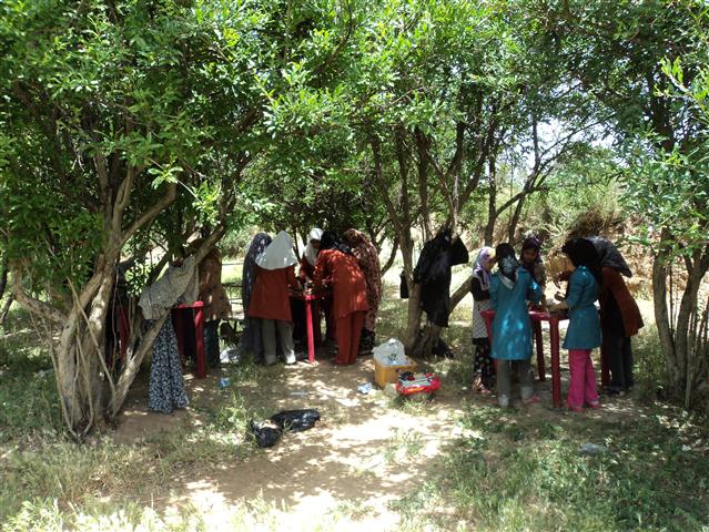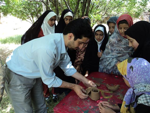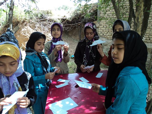 "خودرو به روستای مدوار که رسید، سرود کانون را از طریق بلندگو پخش کردم و در کوچههای آن پرسه زدم. سپس به سمت محل مورد نظر (روبروی کتابخانه عمومی مدوار) به راه افتادم. در طول مسیر، بچههایی که کتابهایشان را در دست داشتند، دیده میشدند. بعد از قرار گرفتن در محل و انجام برگشت و امانت کتاب، به کنار نهر آب رفتیم و من برای بچهها قصهی "فیل کوچولو دماغت کو؟" را تعریف کردم. سپس کمی آنطرفتر در زیر سایههای درختان انار مشغول فعالیت کاردستی شدیم. کار با گل سفال و ساخت کفشهای گلی کار بعدی ما در زیر گلانارها بود. و در آخر، این دستان پر مهر و محبت کودکان بود که با تکانهای خود بدرقه راهمان بودند."