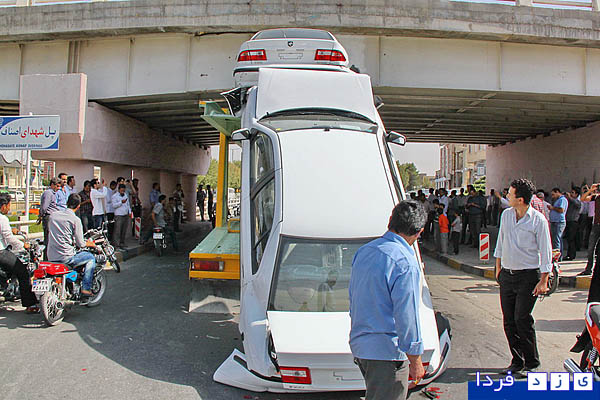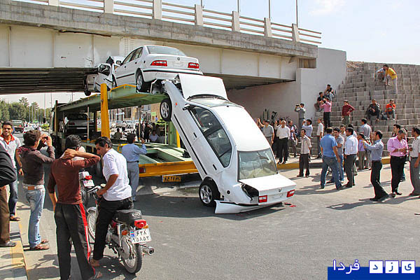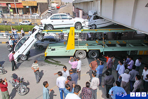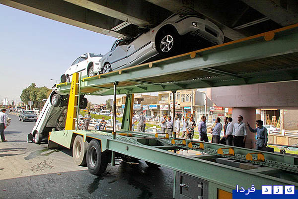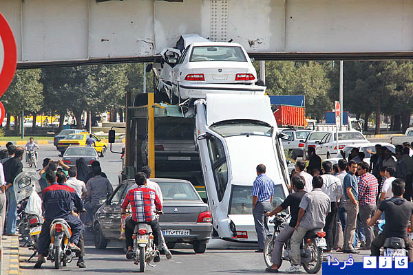 گزارش تصویری؛ برخور تریلر حامل خودرو با پل شهدای اصناف (پل همافر)