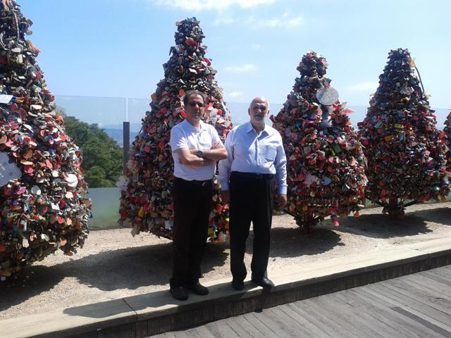 صبح روز جمعه با اتوبوس به محل ايستگاه راه آهن و از آنجا به سئول رفتيم ، با هماهنگي آقاي دكتر سعيد آبادي ، اكيپ اعزامي از يزد ميهمان سفير ايران در كره جنوبي بوديم كه جاي تشكر از ايشان و سفير محترم را دارد .ابتدا با خودرو سفارت جهت بازديد از شهر سئول از جمله خيابان فرهنگ كه پياده را ه شده بود و نكات جالبي داشت و سپس براي بازديد از برج سئول به بالاي كوهي در سئول رفتيم، زنان و مردان، پيران و جوانان زيادي با پاي پياده يا دوچرخه به بالاي اين كوه مي آمدند كه جلب توجه مي كرد. در محوطه بالاي اين كوه برج فلزي سئول وجود داشت با چند ساختمان خدماتي و تفريحي همچنين قفل هاي بيشماري كه زوجهاي جوان آنجا به سازه اي به شكل درخت يا به نرده هاي آنجا قفل كرده بودند و يادداشتهائي كه به آنها پيوست كرده بودند كه گويا با بستن قفل ها متعهد شده بودند كه به زندگي مشتركشان پايبند بمانند جلب توجه ميكرد . سپس در ضيافت نهار به اتفاق آقاي سفير و معاون علمي و فرهنگي سفارت . در يك رستوران هندي شركت كرديم. اطلاعات زيادي نامبردگان به ما دادند كه مفيد و قابل تأمل است كه ذيلاً خواهد آمد كه ميتواند درسي براي ما باشد.ضمناً در بيرون رستوران چند سرباز آمريكايي را مشاهده كرديم. چون آمريكا در اين كشور پايگاه نظامي دارد .