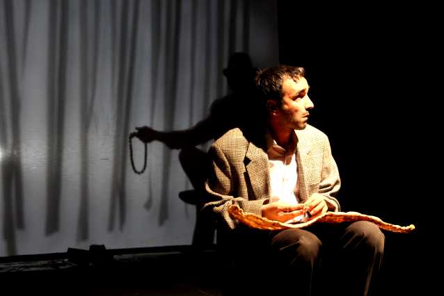 گزارش تصویری آخرین شب اجرای نمایش کسی زیر سنگها آواز می خواند به نویسندگی سعید شهریار و کارگردانی صادق نصیری در سالن پلاتوی تالار هنر در قالب جشنواره تئاتر بسیج استان یزد