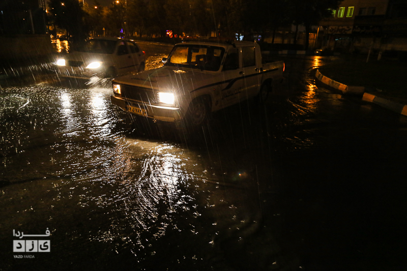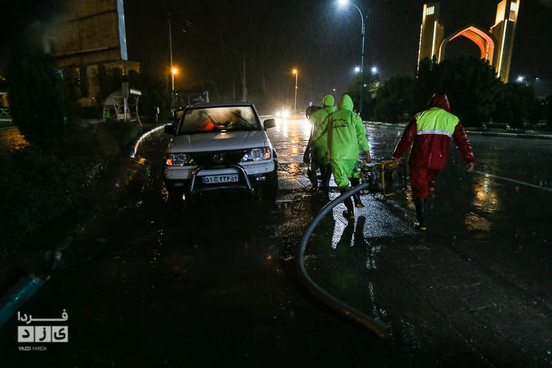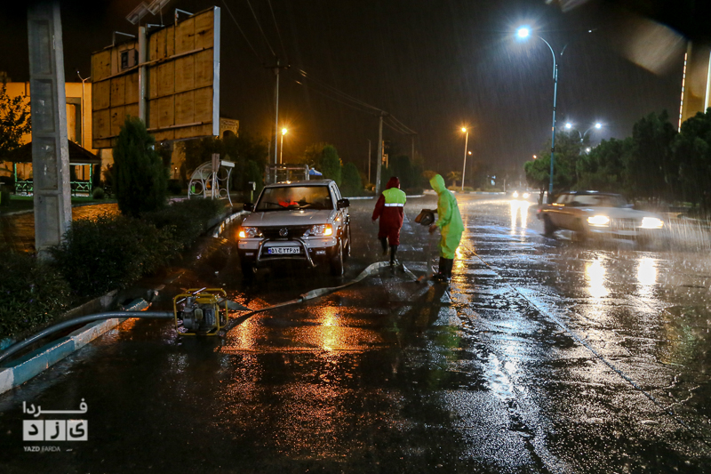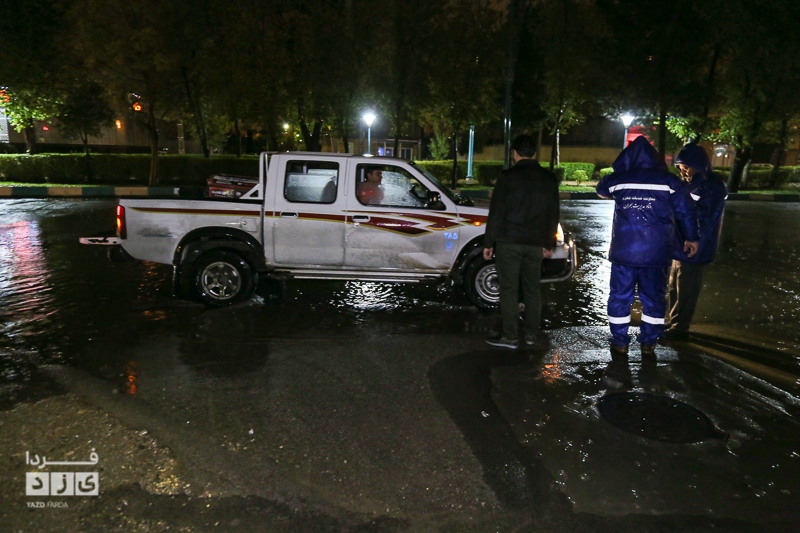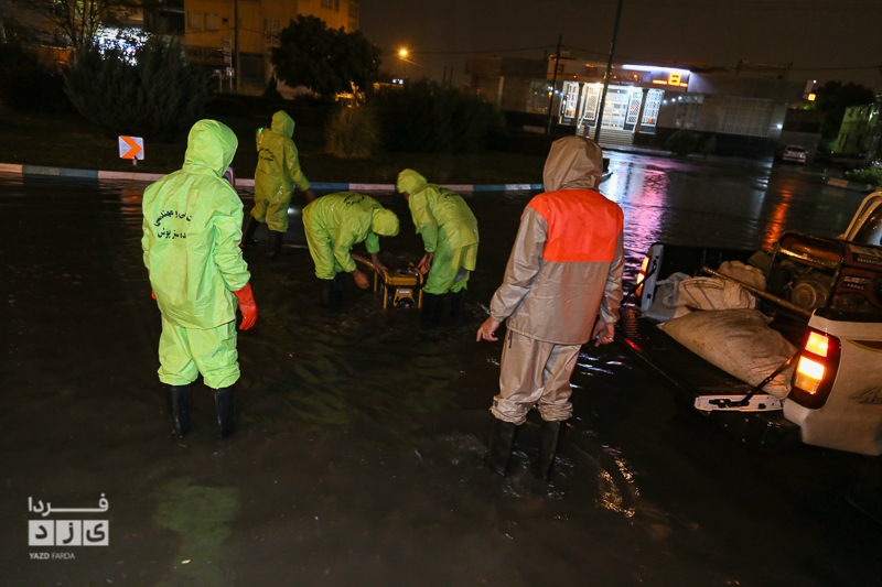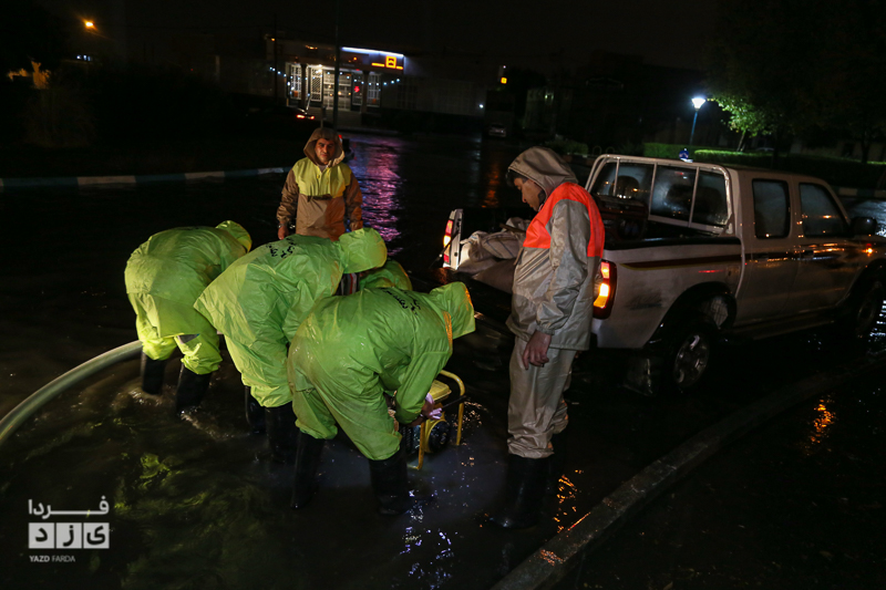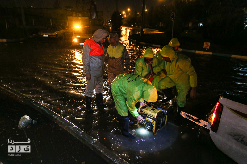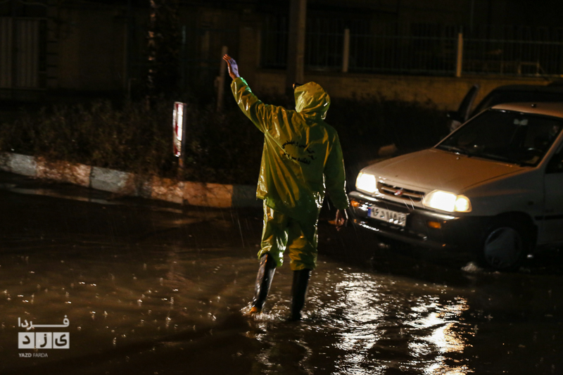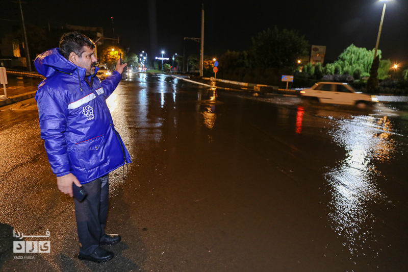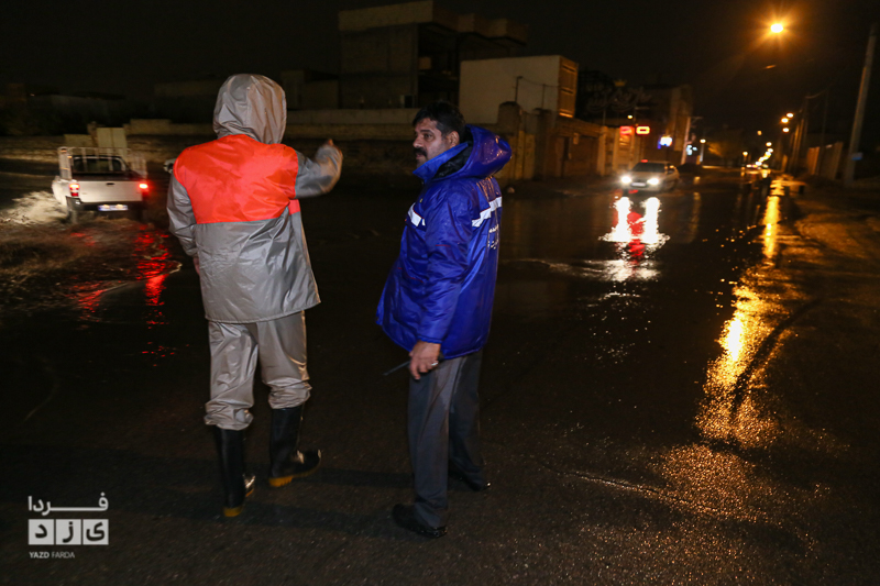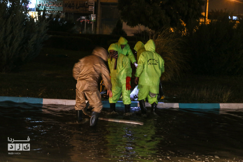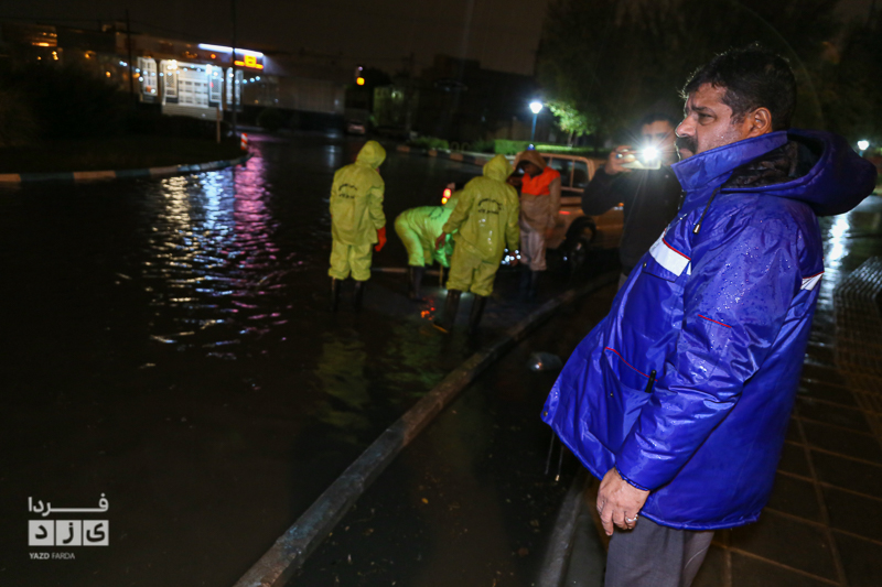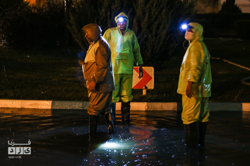 یزدفردا/ حضور شبانه حمید رضا رحیمدل سرپرست معاونت خدمات و محیط زیست شهری به همراه حامد سلطانی سرپرست مدیریت ارتباطات و امور بین الملل و همچنین نیروی های خدماتی جهت بررسی وضعیت و رفع معظل وران آب ها و بازدید از کانال های هدایت آب و دستور پاکسازی دریچه چاهای جذبی سطح شهر یزد.