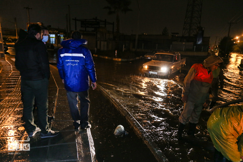 حضور شبانه سرپرست معاونت خدمات ومحیط زیست شهری برای رفع مشکل دفع روان آبهای سطحی
