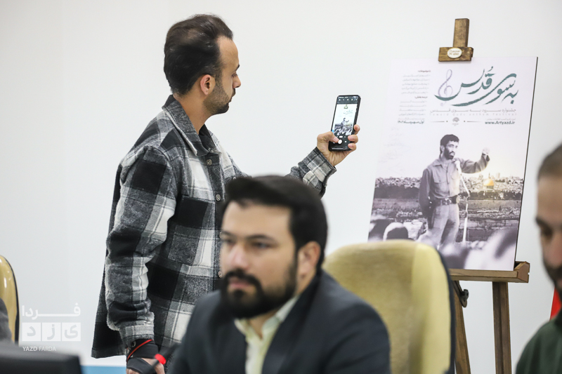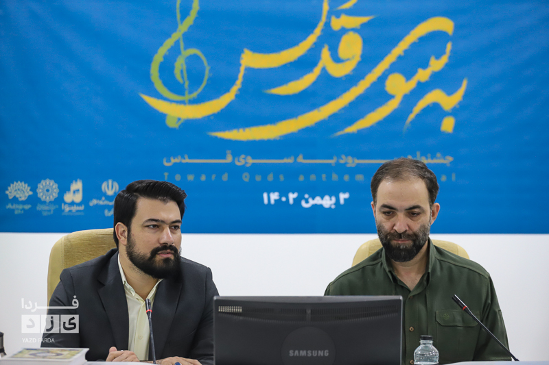 نشست خبری جشنواره ملی سرود به سوی قدس صبح روز سه شنبه سوم بهمن ماه با حضور «حسام سالکی» مدیر حوزه هنری استان، «حامد اسماعیلی» مدیر مرکز سینوا، «احسان عابدی» مدیر کل فرهنگ و ارشاد اسلامی استان یزد، «مصطفی زارع زاده» رییس سازمان فرهنگی اجتماعی ورزشی شهرداری یزد،«ابوالفضل کرمانی نسب» دبیر این جشنواره و همچنین جمعی از اصحاب رسانه استان در محل حوزه هنری برگزار شد.